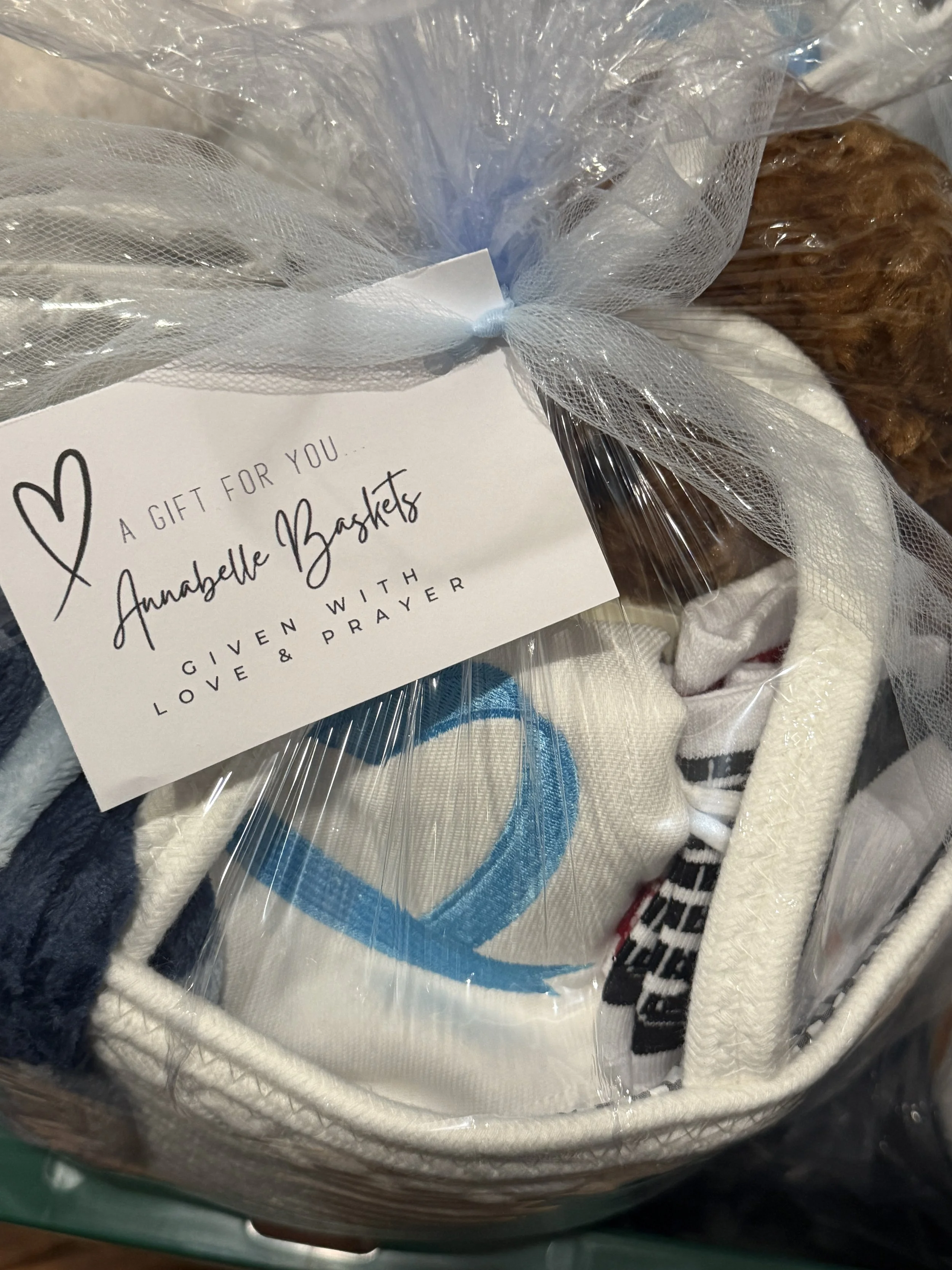 Each Annabelle Basket is given to babies born with congenital heart defects who require open heart surgery within their first days, weeks, or months of life.